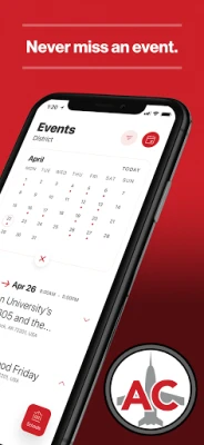 NEVER MISS AN EVENT The event section shows a list of events throughout the district. Users can add an event to your calendar to share the event with friends and family with one tap.