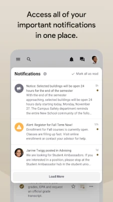 - Keep updated on announcements and alerts specific to students, faculty and staff.