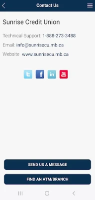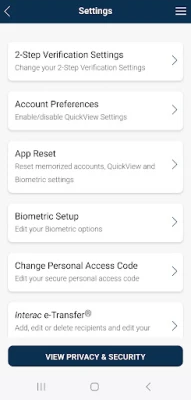When you install the app it will ask for permission to access the following functions of your device: Location services – allows the app to use your device's GPS to find the nearest branch or ATM Camera – allows the app to use device camera to take picture of cheque Contacts – allows you to create new INTERAC® e-Transfer recipients by selecting from your device contacts.