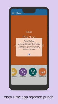 • Clock In/Out • Clock into meals/breaks • Transfer into new departments • Geolocation and geofencing supported This application will store the punches locally on the mobile device in case of lost internet. Once the internet is reestablished, the app will send the punches to the server.